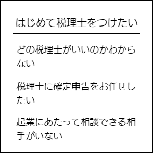 皆さんの最大の関心ごとが、利益を得ることであることは十分に承知しております。大変恐縮ですが、税理士顧問の選択が短期の売上拡大に直接貢献するものとは言えません。